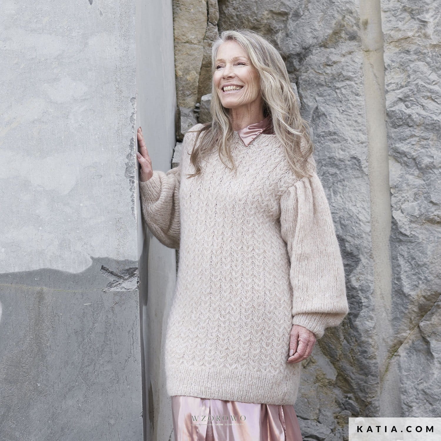 Zalecane druty 6–7 mm, szydełko 4,5 mm.