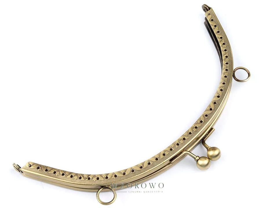 Zapięcie posiada uchwyty na uszy o średnicy 1 cm. Ramka jest przeznaczona do naszycia, gdzie tkaninę wyrób ze sznurka(torebka dziergana) wkłada się do środka i ręcznie przeszywa przez dziurki, których rozpiętość wynosi 6 mm. Dziurki znajdują się tylko na zewnętrznej stronie ramki. Ten rodzaj zapięcia używany jest do każdego typu torebek: na imprezę czy do noszenia na co dzień.