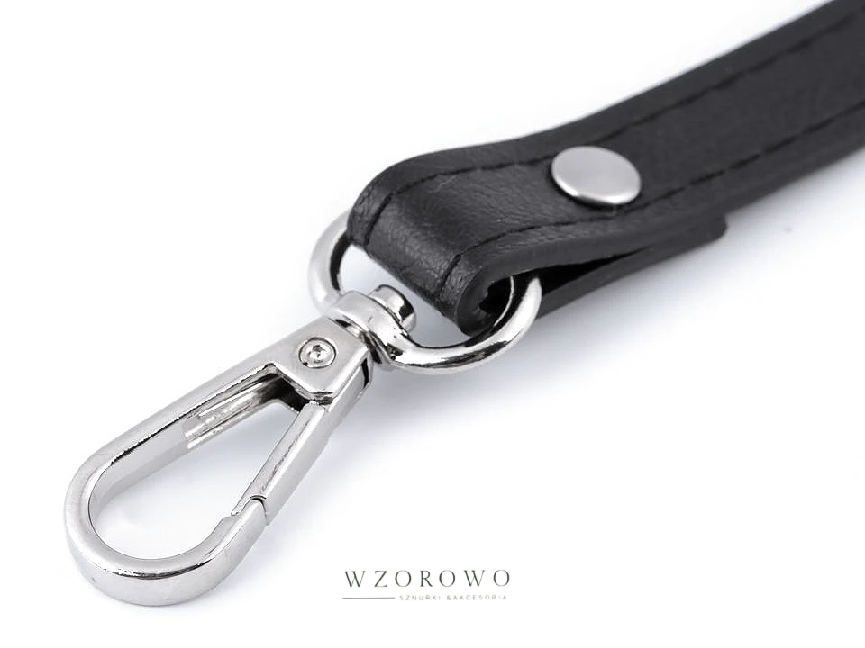 Pasek do torebki z eko skory posiada na każdym końcu karabińczyk, także można go łatwo przypiąć do torebki. Jest przeszyty.