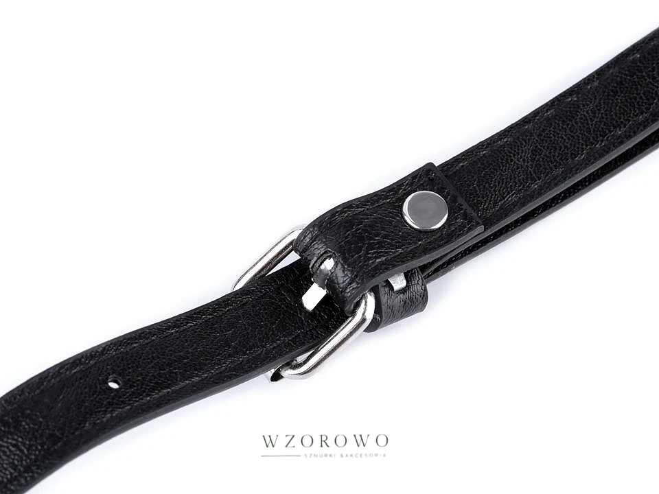 Dzięki regulatorowi można nastawić jego długość. Eko skóra zrobiona jest z materiałów syntetycznych.