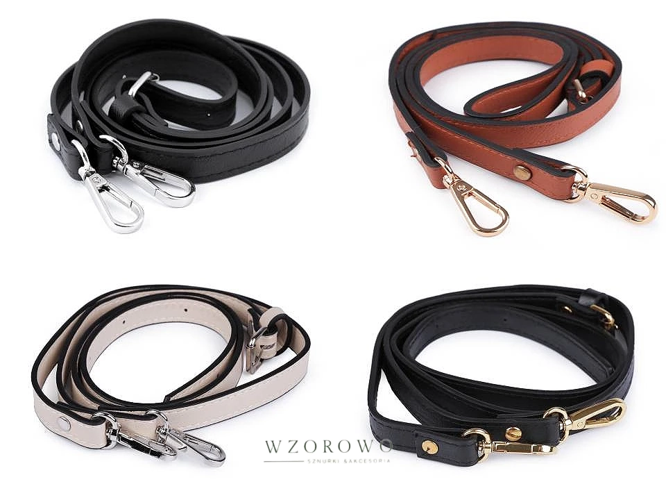 Pasek do torebki z eko skory posiada na każdym końcu karabińczyk, także można go łatwo przypiąć do torebki. Jest przeszyty.