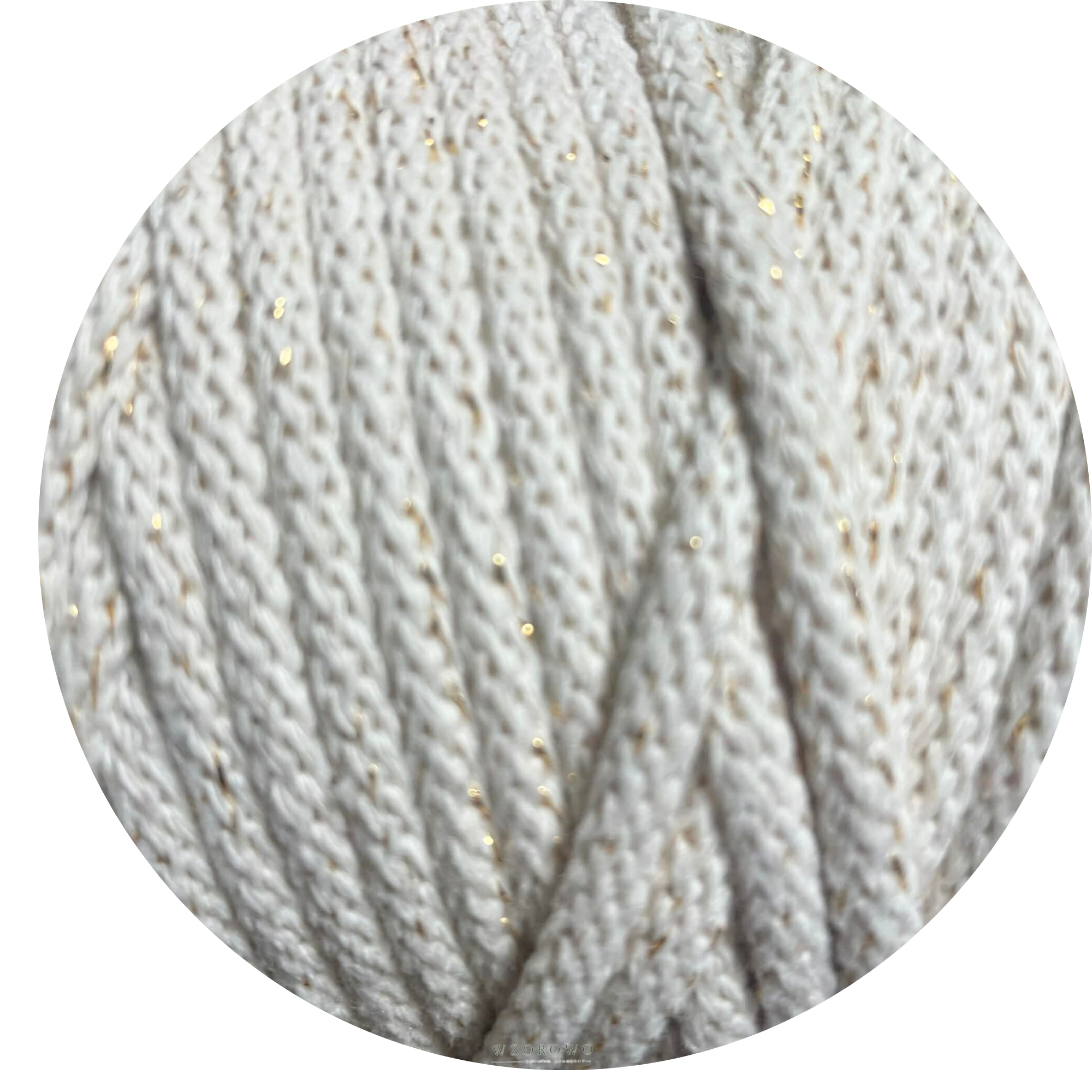Sznurek Bawełniany 5mm biały ze złotą nicią