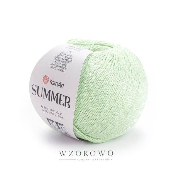 Włóczka Summer to letnia włóczka zawierająca 70% bawełny i 30% wiskozę. Mieszanki bawełny z wiskozą są przewiewne, miękkie, chłonne i połyskliwe. Poczujesz się w nich naprawdę komfortowo nawet w upalne dni. Summer świetnie sprawdzi się do robienia ubrań takich jak letnie bluzki, spódnice i sukienki, a także dodatki, takie jak czapki, torby i paski